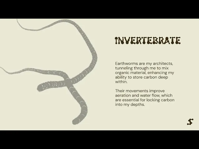 This touchpoint, titled FOUNDATION OF LIFE, introduces a video that reveals the critical role of the more-than-human body (MTHB) in soil’s carbon cycle.